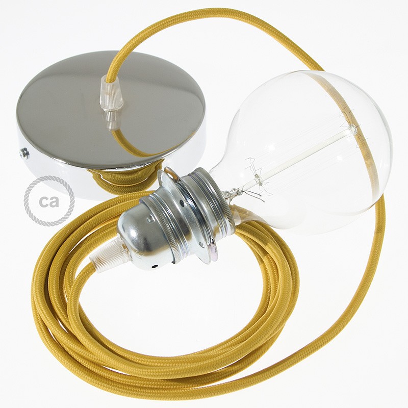 Crea tu pendel para pantalla con el cable textil Mostaza Efecto Seda RM25: elige el color del rosetón y del portalámpara, la longitud del cable y si recibirlo ya montado por el personal creative-cables o en forma de kit para el montaje. Los pendels Creative-cables son ideales para dar un toque de estilo y de color a tu hogar.