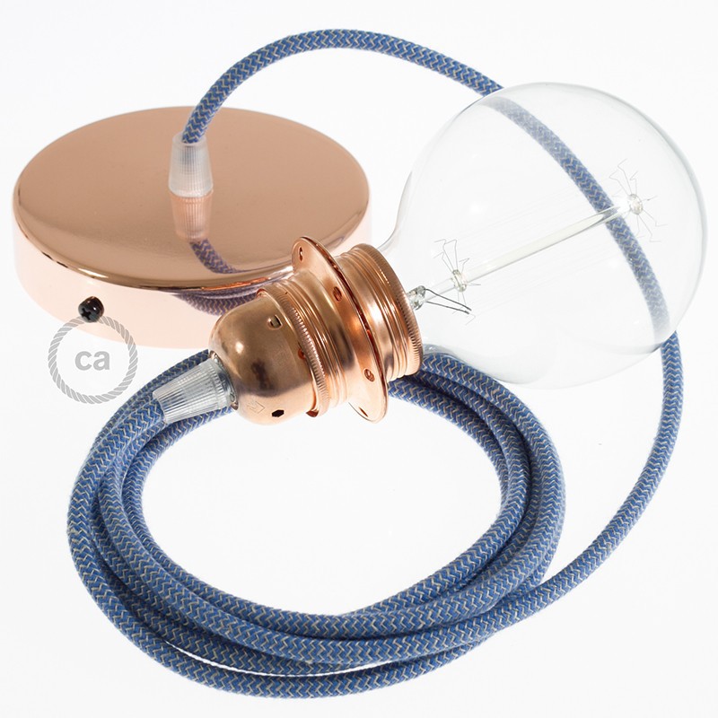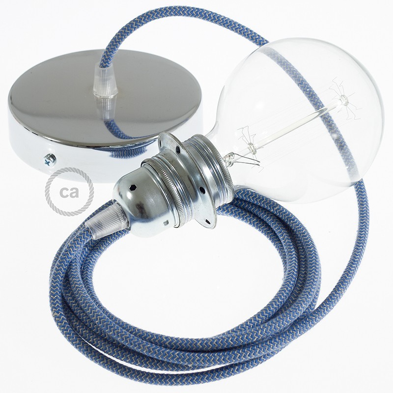 Crea tu pendel para pantalla con el cable textil ZigZag Azul Steward RD75: elige el color del rosetón y del portalámpara, la longitud del cable y si recibirlo ya montado por el personal creative-cables o en forma de kit para el montaje. Los pendels Creative-cables son ideales para dar un toque de estilo y de color a tu hogar.