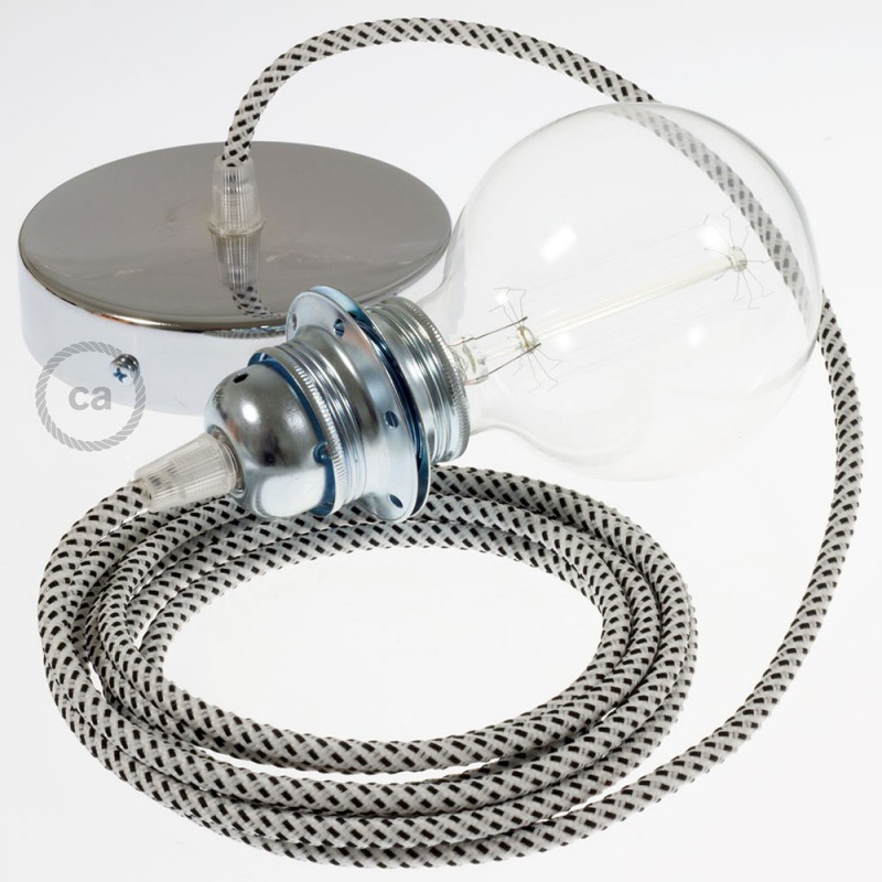 Crea tu pendel para pantalla con el cable textil Stracciatella 3D RT14: elige el color del rosetón y del portalámpara, la longitud del cable y si recibirlo ya montado por el personal Creative-Cables o en forma de kit para el montaje. Los pendels Creative-cables son ideales para dar un toque de estilo y de color a tu hogar.
