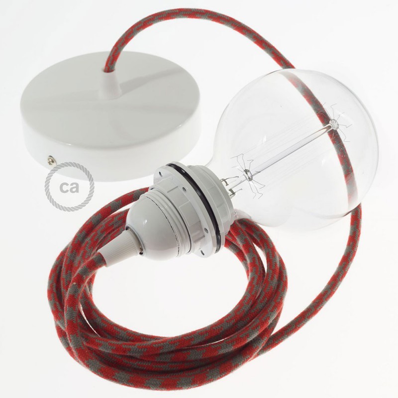 Crea tu pendel para pantalla con el cable textil Bicolor Rojo Fuego y Gris en Algodón RP28: elige el color del rosetón y del portalámpara, la longitud del cable y si recibirlo ya montado por el personal Creative-Cables o en forma de kit para el montaje. Los pendels Creative-cables son ideales para dar un toque de estilo y de color a tu hogar.