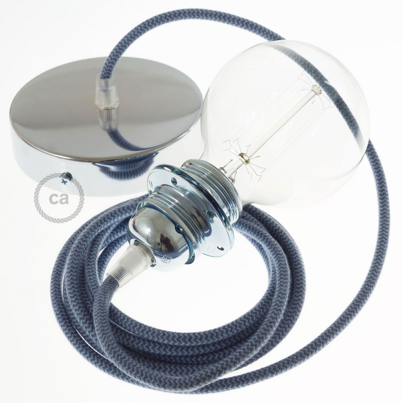 Crea tu pendel para pantalla con el cable textil ZigZag Gris Piedra y Océano en Algodón RZ25: elige el color del rosetón y del portalámpara, la longitud del cable y si recibirlo ya montado por el personal Creative-Cables o en forma de kit para el montaje. Los pendels Creative-cables son ideales para dar un toque de estilo y de color a tu hogar.