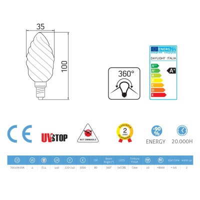 • Innovadora lámpara LED con chip LED COB lineares. Temperatura de funcionamento: -20°C ~ +50°C. Amplia emisión de luz. Agradable efecto idéntico al de las bombillas incandescentes. Larga duración. Temperatura del vidrio de cobertura muy baja. IC Driver Design a corriente constante. Elevado ahorro energético. Interior de la bombilla al vacío. Soporte chip...