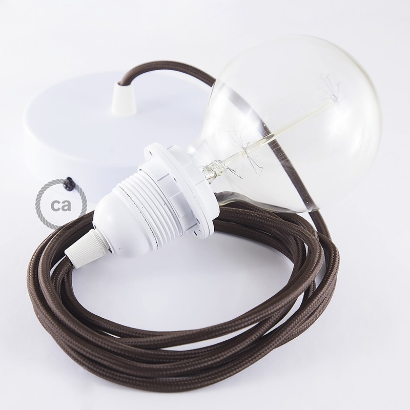 Crea tu pendel para pantalla con el cable textil Marrón en tejido Efecto Seda RM13: elige el color del rosetón y del portalámpara, la longitud del cable y si recibirlo ya montado por el personal creative-cables o en forma de kit para el montaje. Los pendels Creative-cables son ideales para dar un toque de estilo y de color a tu hogar.