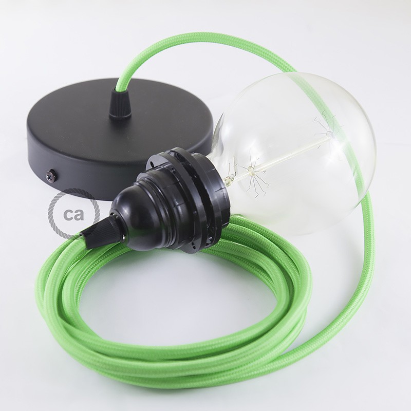 Crea tu pendel para pantalla con el cable textil Verde Lima en tejido Efecto Seda RM18: elige el color del rosetón y del portalámpara, la longitud del cable y si recibirlo ya montado por el personal creative-cables o en forma de kit para el montaje. Los pendels Creative-cables son ideales para dar un toque de estilo y de color a tu hogar.
