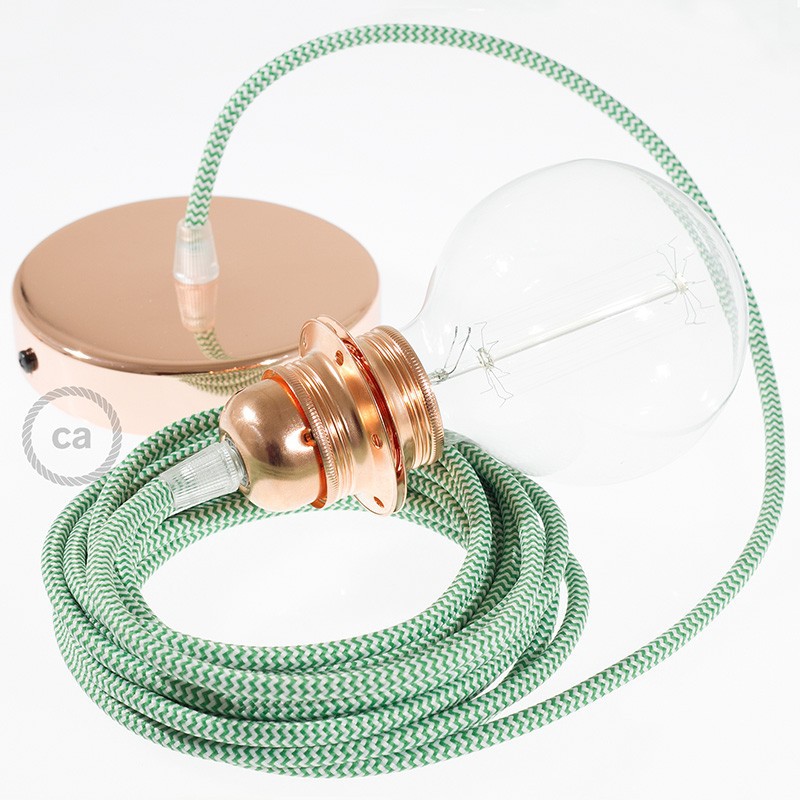 Crea tu pendel para pantalla con el cable textil ZigZag Verde RZ06: elige el color del rosetón y del portalámpara, la longitud del cable y si recibirlo ya montado por el personal creative-cables o en forma de kit para el montaje. Los pendels Creative-cables son ideales para dar un toque de estilo y de color a tu hogar.