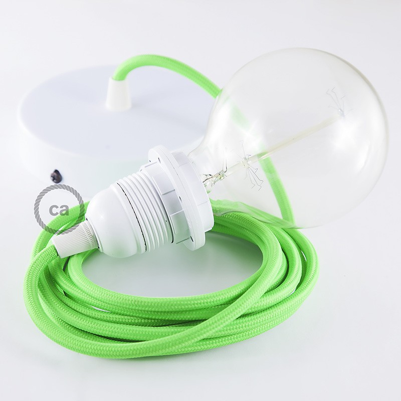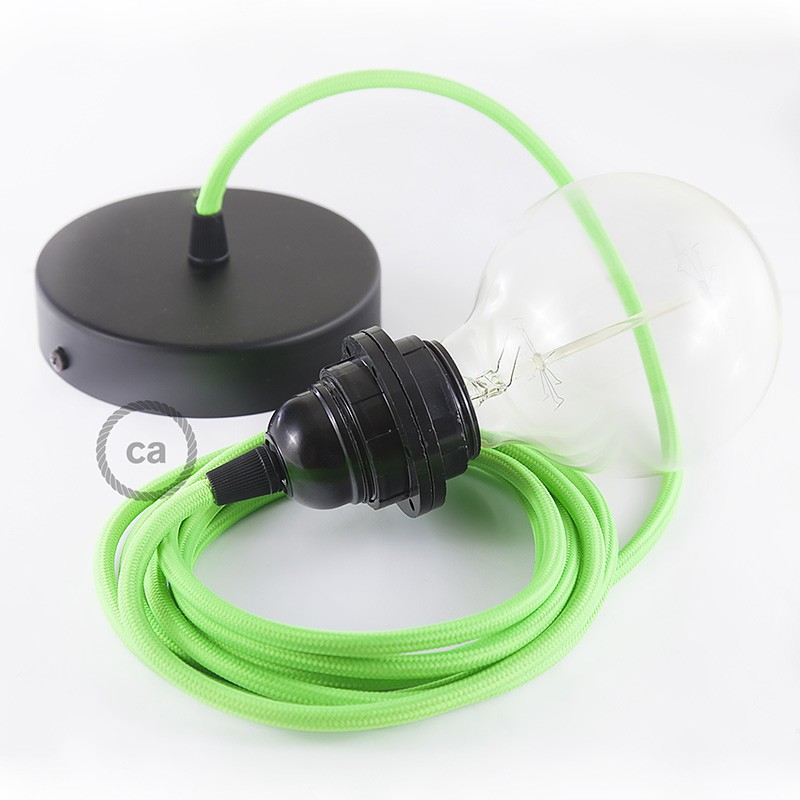 Crea tu pendel para pantalla con el cable textil Verde Fluo RF06: elige el color del rosetón y del portalámpara, la longitud del cable y si recibirlo ya montado por el personal creative-cables o en forma de kit para el montaje. Los pendels Creative-cables son ideales para dar un toque de estilo y de color a tu hogar.