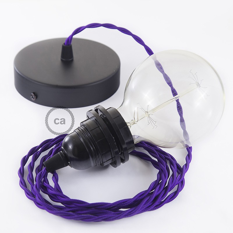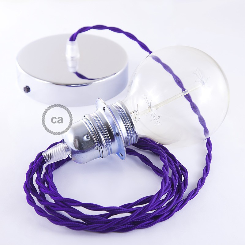 Crea tu pendel para pantalla con el cable textil Púrpura en tejido Efecto Seda TM14: elige el color del rosetón y del portalámpara, la longitud del cable y si recibirlo ya montado por el personal creative-cables o en forma de kit para el montaje. Los pendels Creative-cables son ideales para dar un toque de estilo y de color a tu hogar.