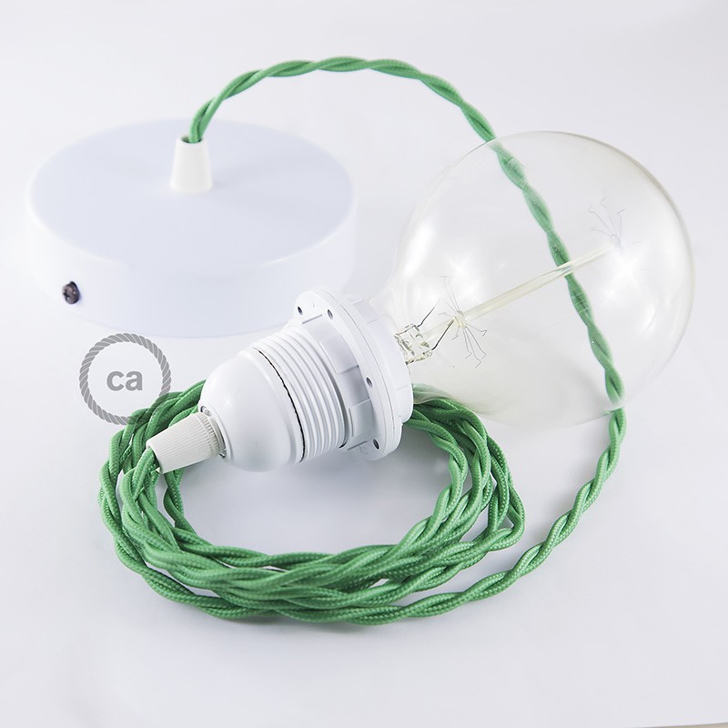 Crea tu pendel para pantalla con el cable textil Verde en tejido Efecto Seda TM06: elige el color del rosetón y del portalámpara, la longitud del cable y si recibirlo ya montado por el personal creative-cables o en forma de kit para el montaje. Los pendels Creative-cables son ideales para dar un toque de estilo y de color a tu hogar.