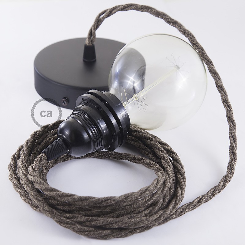 Crea tu pendel para pantalla con el cable textil Marrón en Lino Natural TN04: elige el color del rosetón y del portalámpara, la longitud del cable y si recibirlo ya montado por el personal creative-cables o en forma de kit para el montaje. Los pendels Creative-cables son ideales para dar un toque de estilo y de color a tu hogar.