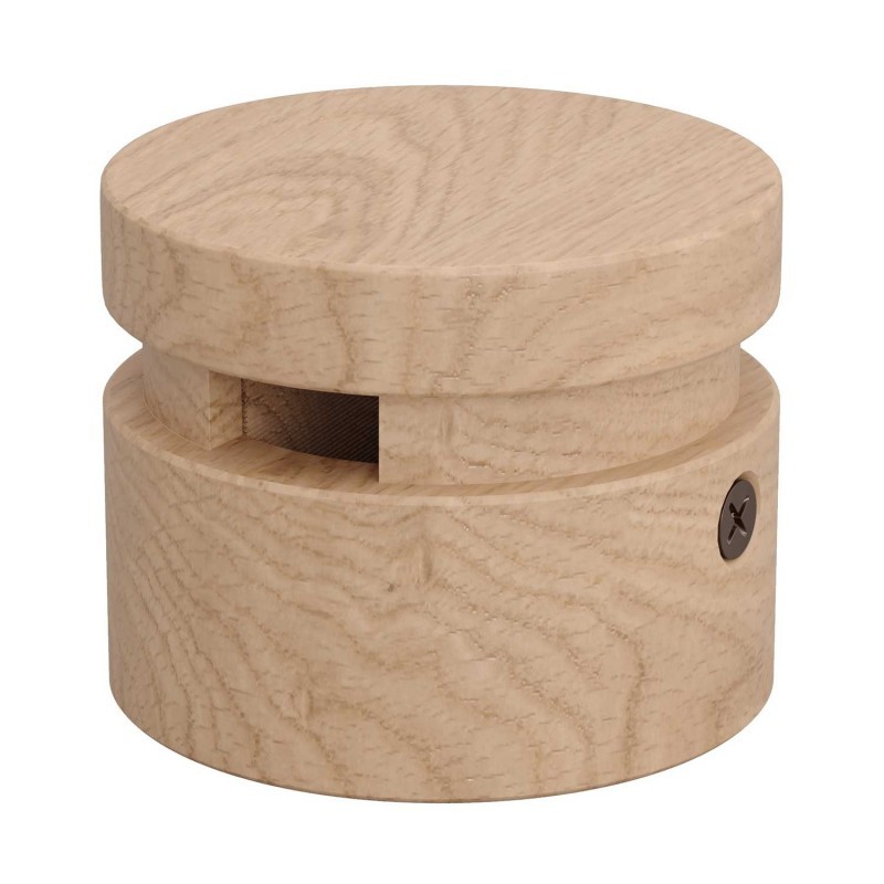 El kit incluye un rosetón de madera de diámetro 50mm, tornillo y taco para fijación en la pared o techo.