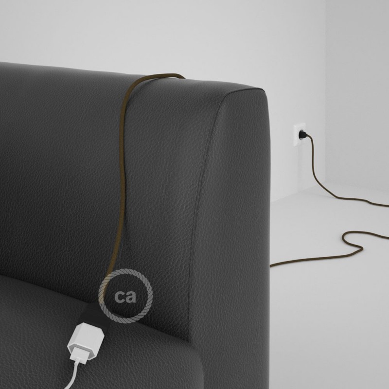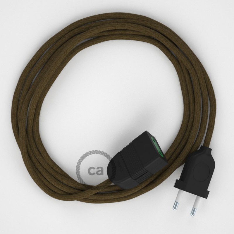 El alargador con cable Redondo RC13 Algodón Marrón de Creative-Cables lleva la corriente eléctrica donde tu quieras y es perfecto para cualquier dispositivo con un clavija con 2 polos: conectar el ordenador portátil, recargar el teléfono móvil o el tablet va a ser mucho más fácil, cómodo y colorado.