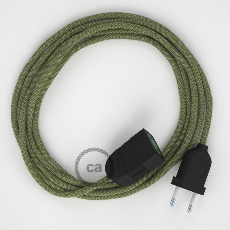 El alargador con cable Redondo RD72 Algodón y Lino Natural ZigZag Verde Tomillo de Creative-Cables lleva la corriente eléctrica donde tu quieras y es perfecto para cualquier dispositivo con un clavija con 2 polos: conectar el ordenador portátil, recargar el teléfono móvil o el tablet va a ser mucho más fácil, cómodo y colorado.