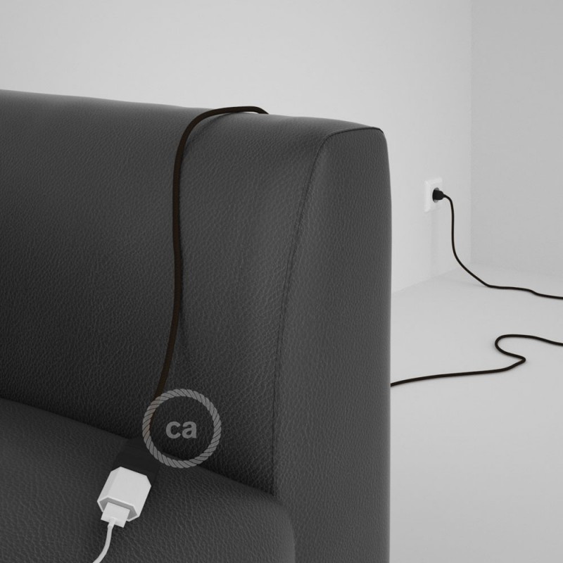 El alargador con cable Redondo RM13 Efecto Seda Marrón de Creative-Cables lleva la corriente eléctrica donde tu quieras y es perfecto para cualquier dispositivo con un clavija con 2 polos: conectar el ordenador portátil, recargar el teléfono móvil o el tablet va a ser mucho más fácil, cómodo y colorado.