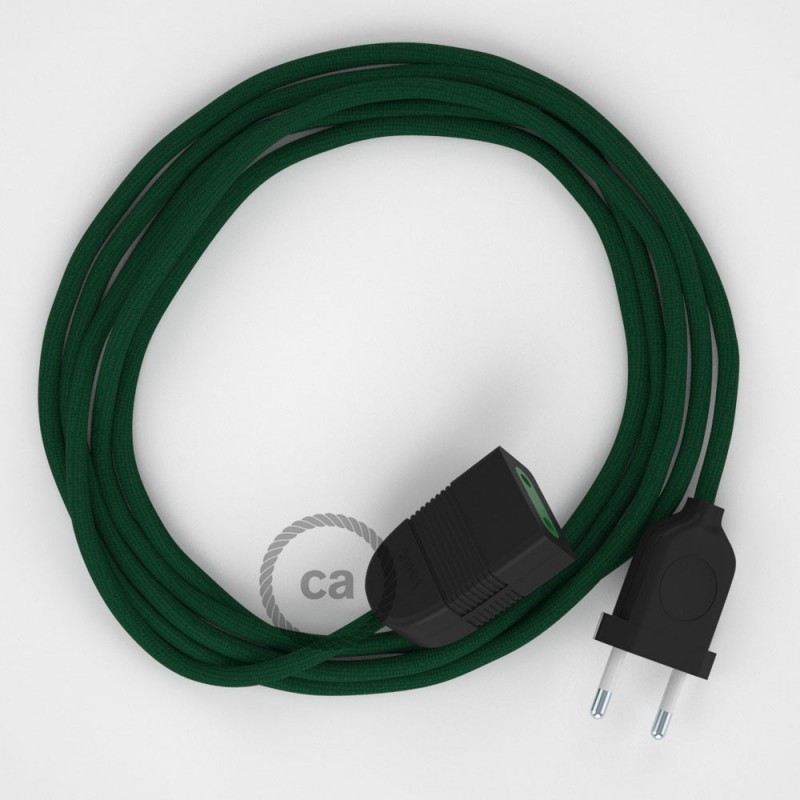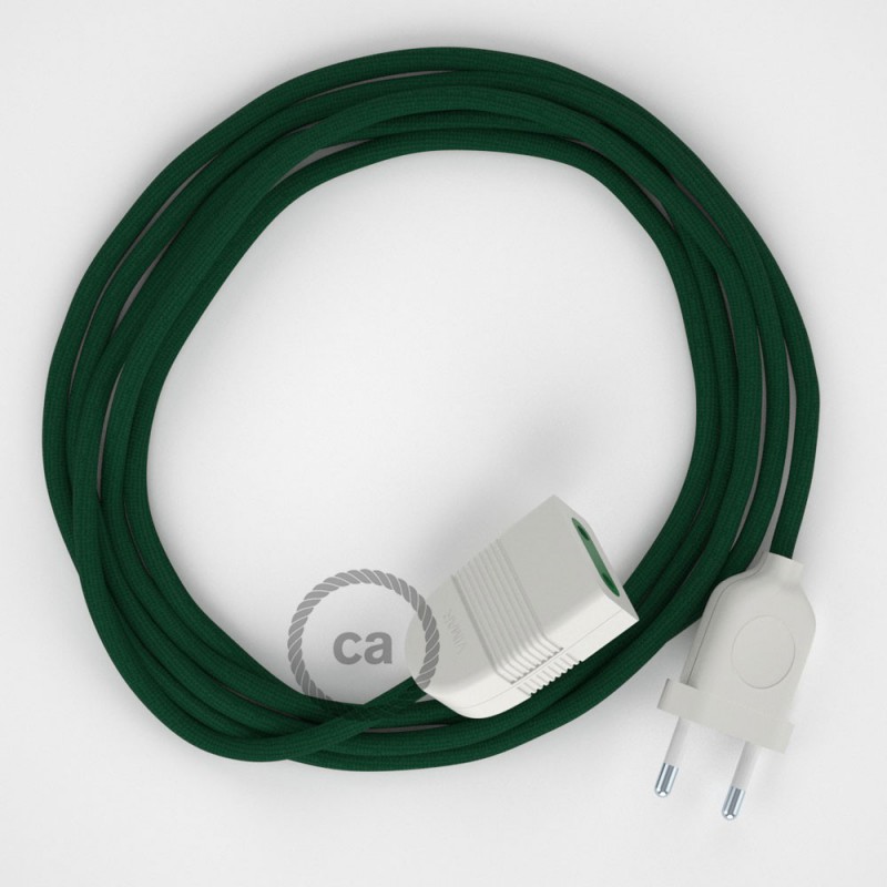 El alargador con cable Redondo RM21 Efecto Seda Verde Oscuro de Creative-Cables lleva la corriente eléctrica donde tu quieras y es perfecto para cualquier dispositivo con un clavija con 2 polos: conectar el ordenador portátil, recargar el teléfono móvil o el tablet va a ser mucho más fácil, cómodo y colorado.