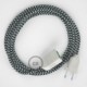Alargador 10A 2P con cable textil RP04 Efecto Seda Bicolor Blanco-Negro.