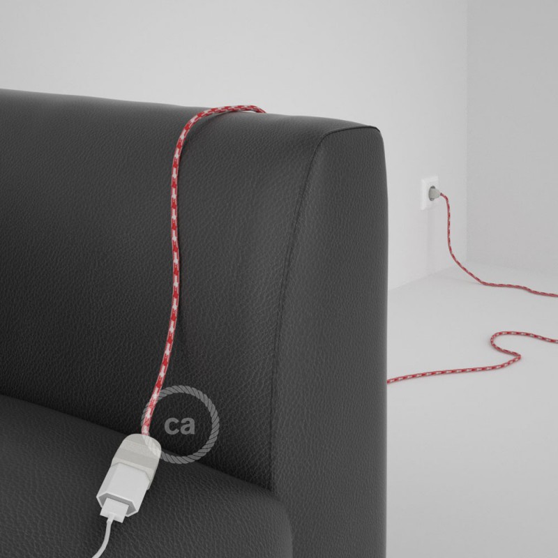 El alargador con cable Redondo RP09 Efecto Seda Bicolor Blanco-Rojo de Creative-Cables lleva la corriente eléctrica donde tu quieras y es perfecto para cualquier dispositivo con un clavija con 2 polos: conectar el ordenador portátil, recargar el teléfono móvil o el tablet va a ser mucho más fácil, cómodo y colorado.