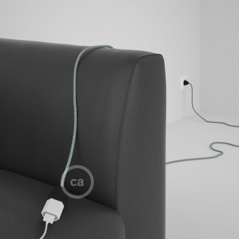 El alargador con cable Redondo RT14 Efecto Seda Stracciatella de Creative-Cables lleva la corriente eléctrica donde tu quieras y es perfecto para cualquier dispositivo con un clavija con 2 polos: conectar el ordenador portátil, recargar el teléfono móvil o el tablet va a ser mucho más fácil, cómodo y colorado.