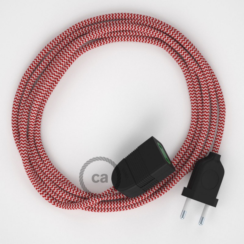 Alargador 10A 2P con cable textil RZ09 Efecto Seda ZigZag Blanco Rojo.