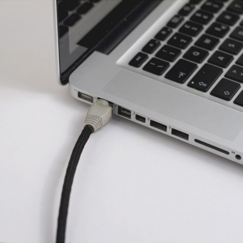 Con el cable LAN redondo recubierto en tejido Efecto Seda Negro RM04 - con conectores RJ45, puedes darle un toque de elegancia y color a tu hogar u oficina !