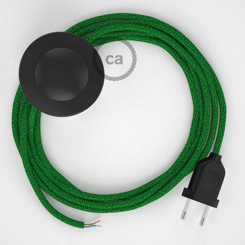 Renueva o da nueva color a una lámpara de pie a través del cable Redondo en Tejido Efecto Seda RL06 Glitter Verde con clavija y interruptor.