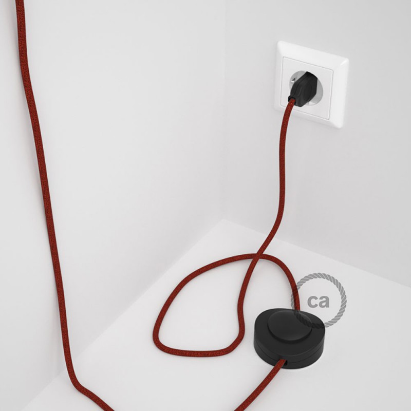 Renueva o da nueva color a una lámpara de pie a través del cable Redondo en Tejido Efecto Seda RL09 Glitter Rojo con clavija y interruptor.