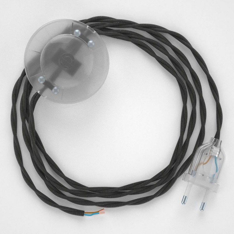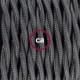 Renueva o da nueva color a una lámpara de pie a través del cable Trenzado en Tejido Efecto Seda TM26 Gris Oscuro con clavija y interruptor.