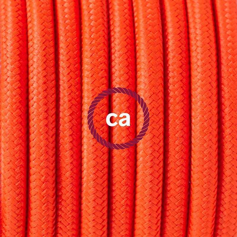 Renueva o da nueva color a una lámpara de pie a través del cable Redondo en Tejido Efecto Seda RF15 Naranja Flùo con clavija y interruptor.