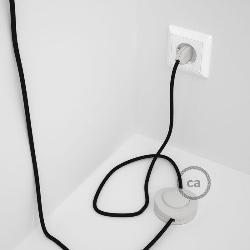 Renueva o da nueva color a una lámpara de pie a través del cable Redondo en Tejido Efecto Seda RM04 Negro con clavija y interruptor.