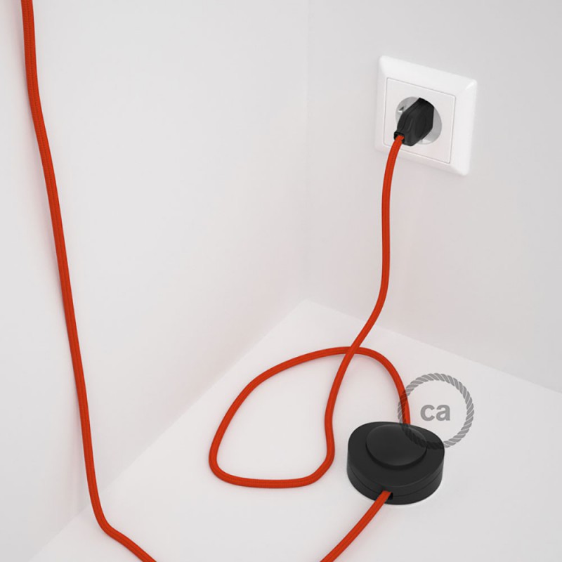 Renueva o da nueva color a una lámpara de pie a través del cable Redondo en Tejido Efecto Seda RM15 Naranja con clavija y interruptor.