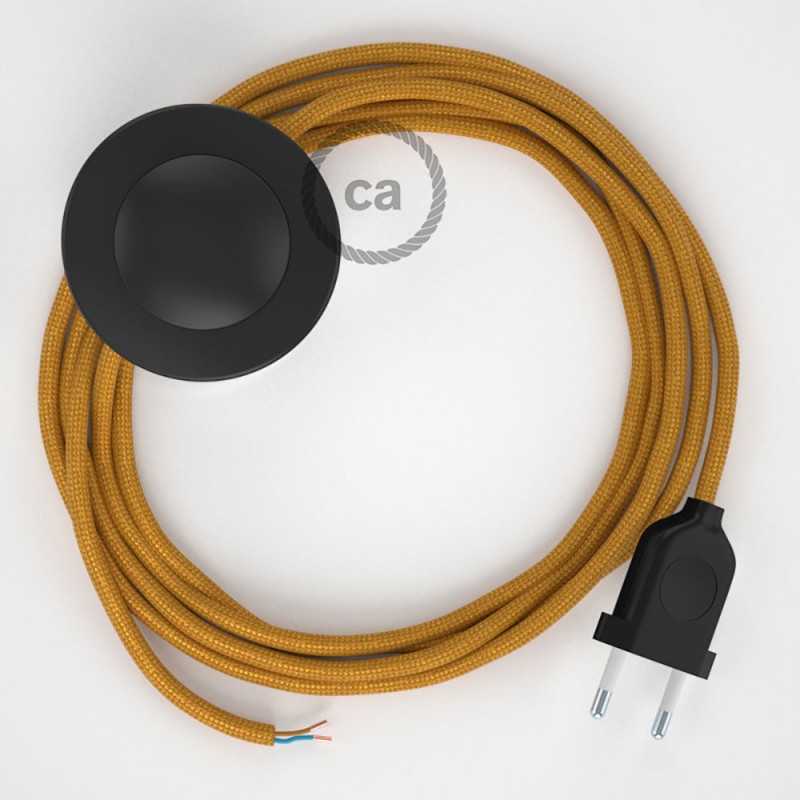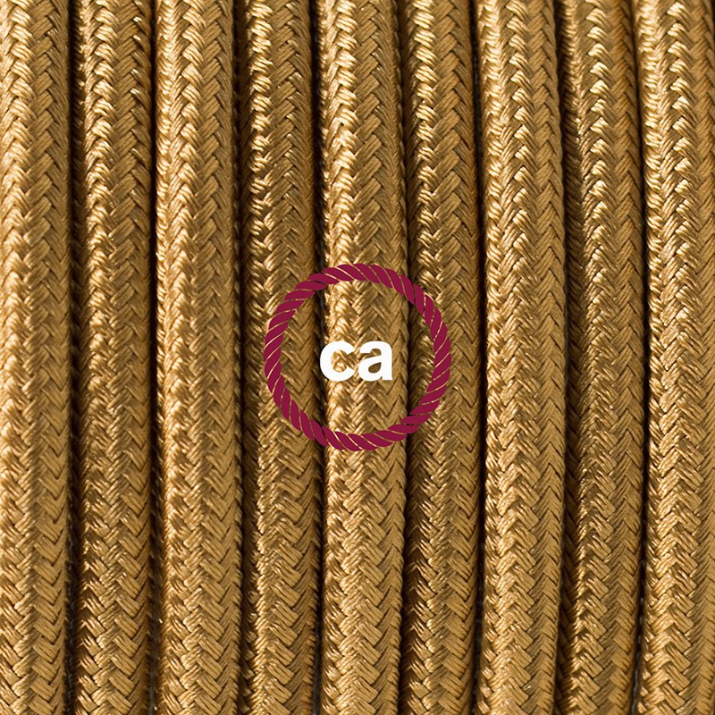 Renueva o da nueva color a una lámpara de pie a través del cable Redondo en Tejido Efecto Seda RM05 Dorado con clavija y interruptor.