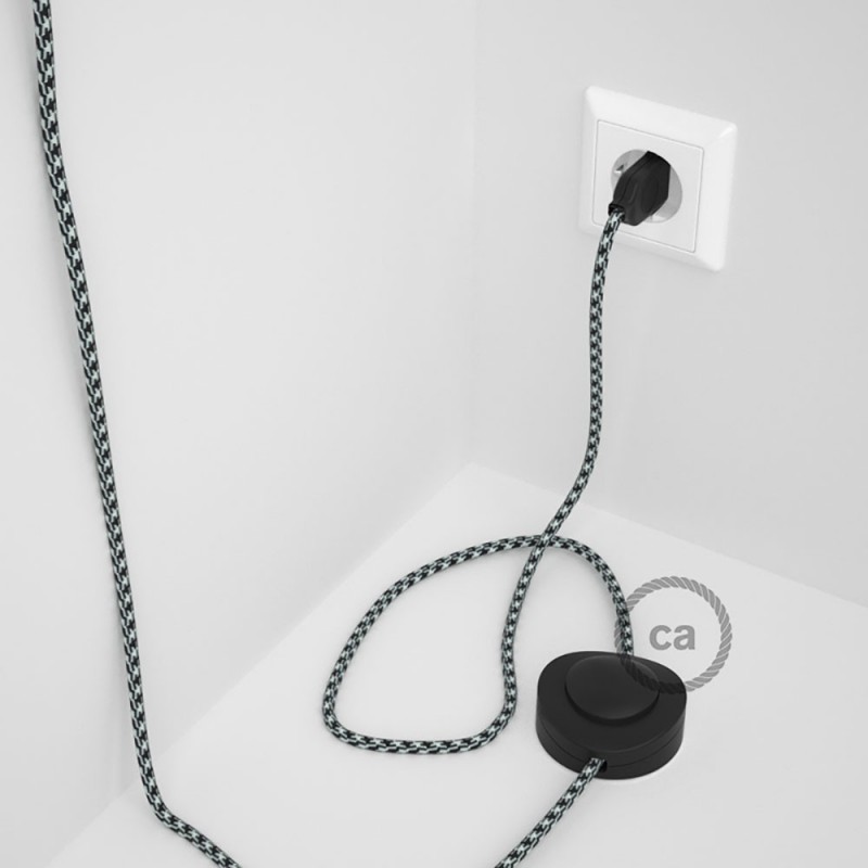 Renueva o da nueva color a una lámpara de pie a través del cable Redondo en Tejido Efecto Seda RP04 Bicolor Blanco-Negro con clavija y interruptor.