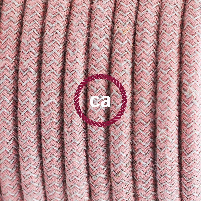 Renueva o da nueva color a una lámpara de pie a través del cable Redondo en Algodón y Lino Natural RD71 ZigZag Rosa Viejo con clavija y interruptor.