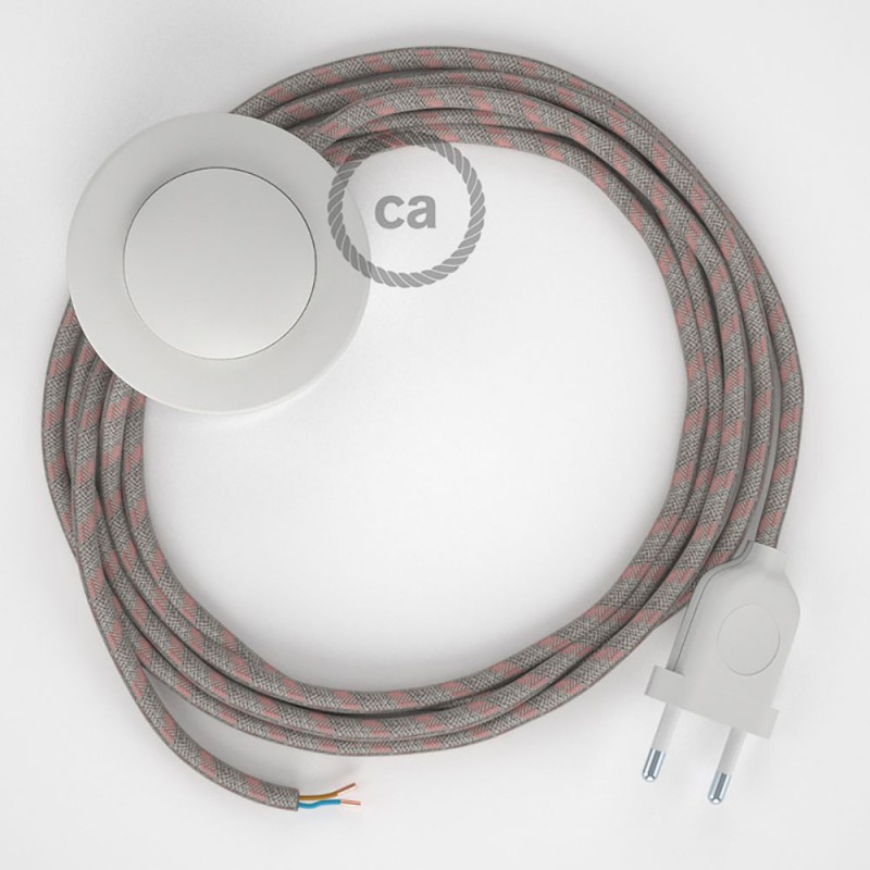 Renueva o da nueva color a una lámpara de pie a través del cable Redondo en Algodón y Lino Natural RD51 Stripes Rosa Viejo con clavija y interruptor.