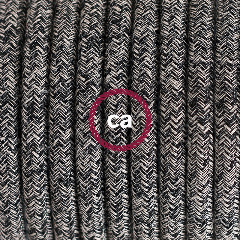 Renueva o da nueva color a una lámpara de pie a través del cable Redondo en Algodón y Lino Natural RS81 Negro con clavija y interruptor.