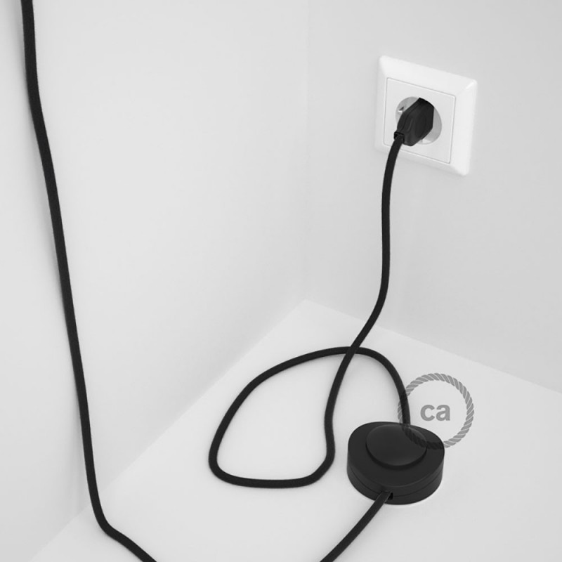 Renueva o da nueva color a una lámpara de pie a través del cable Redondo en Algodón RC04 Negro con clavija y interruptor.