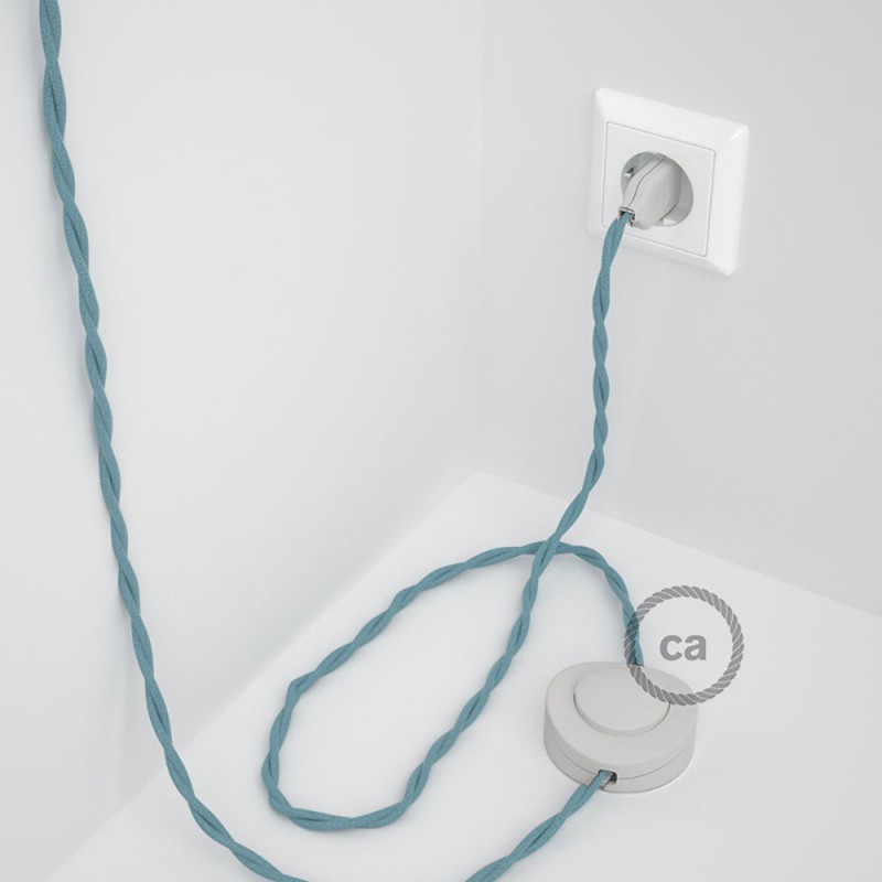 Renueva o da nueva color a una lámpara de pie a través del cable Trenzado en Algodón TC53 Oceano con clavija y interruptor.