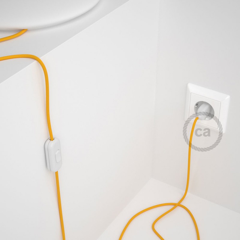 Renueva o da nueva color a una lámpara de mesa a través del cable Redondo en Tejido Efecto Seda RM10 Amarillo con clavija y interruptor.