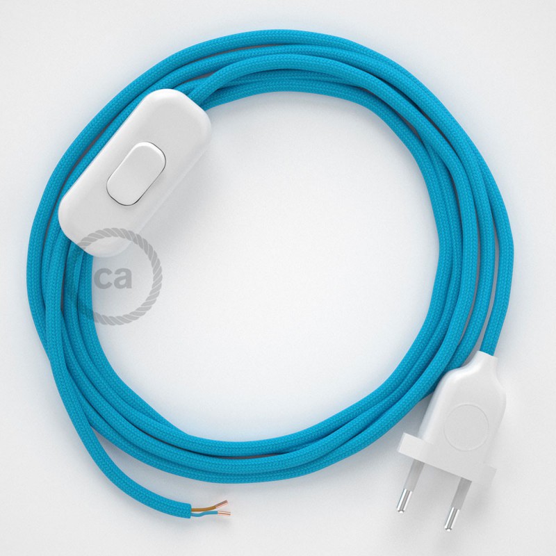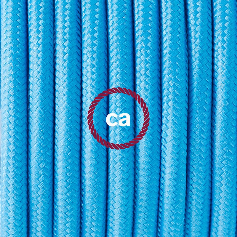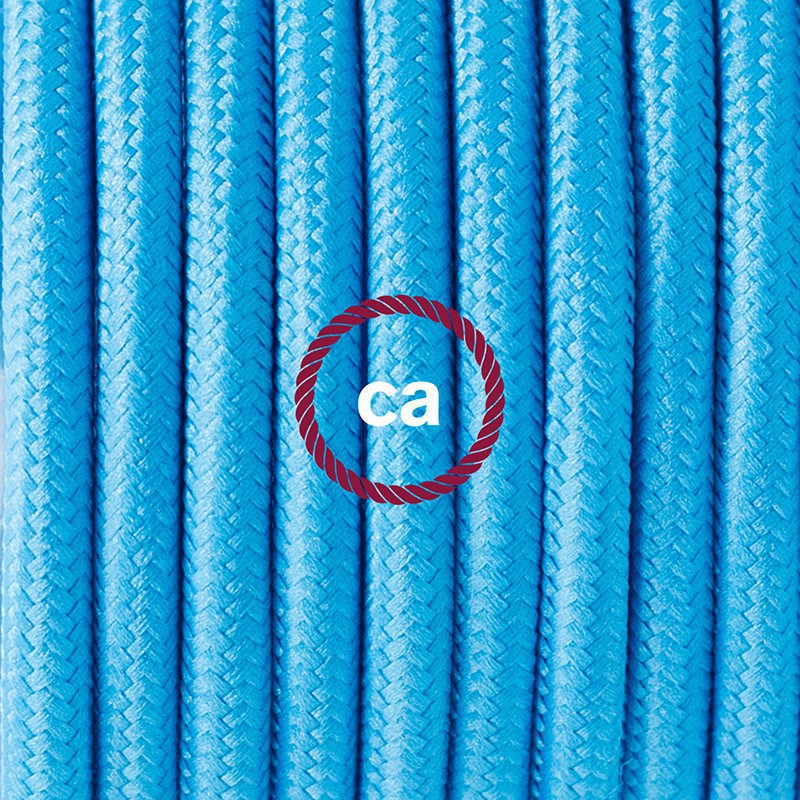 Renueva o da nueva color a una lámpara de mesa a través del cable Redondo en Tejido Efecto Seda RM11 Celeste con clavija y interruptor.