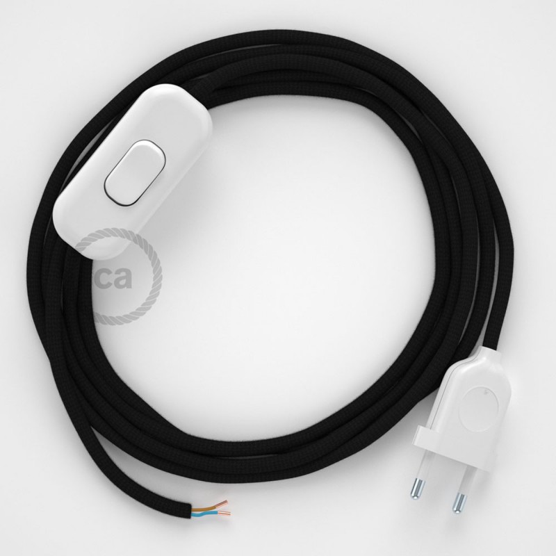 Cable de alimentación, cableado para lámpara con clavija y interruptor.
