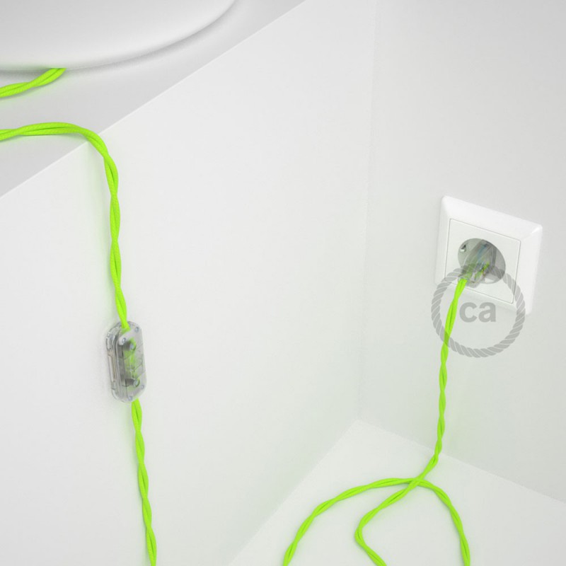 Renueva o da nueva color a una lámpara de mesa a través del cable Trenzado en Tejido Efecto Seda TF10 Amarillo Fluo con clavija y interruptor.