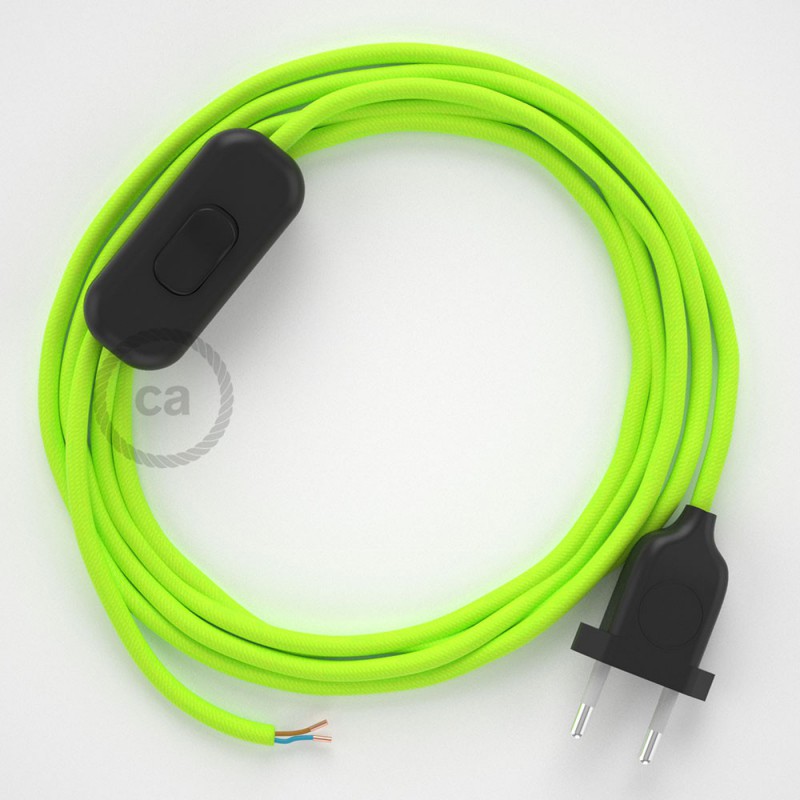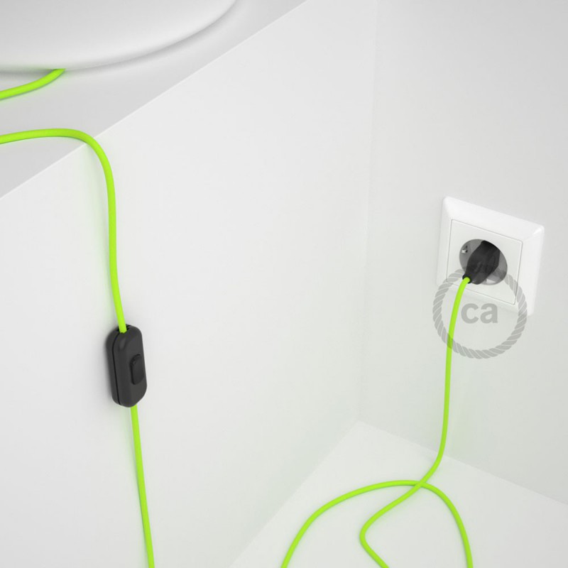 Renueva o da nueva color a una lámpara de mesa a través del cable Redondo en Tejido Efecto Seda RF10 Amarillo Flúo con clavija y interruptor.