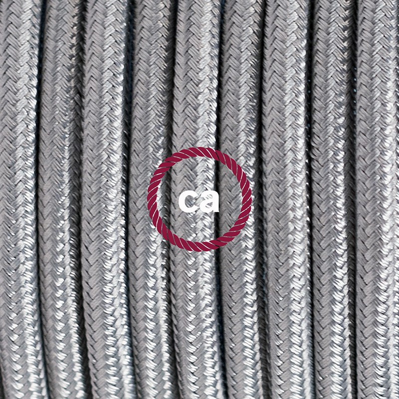 Renueva o da nueva color a una lámpara de mesa a través del cable Redondo en Tejido Efecto Seda RM02 Plateado con clavija y interruptor.