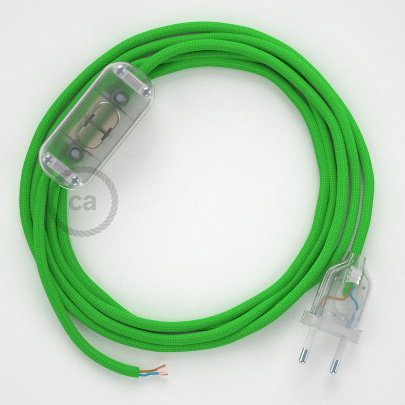 Renueva o da nueva color a una lámpara de mesa a través del cable Redondo en Tejido Efecto Seda RM18 Verde Lima con clavija y interruptor.