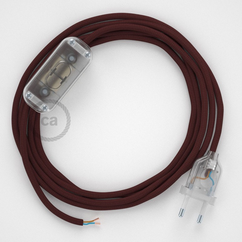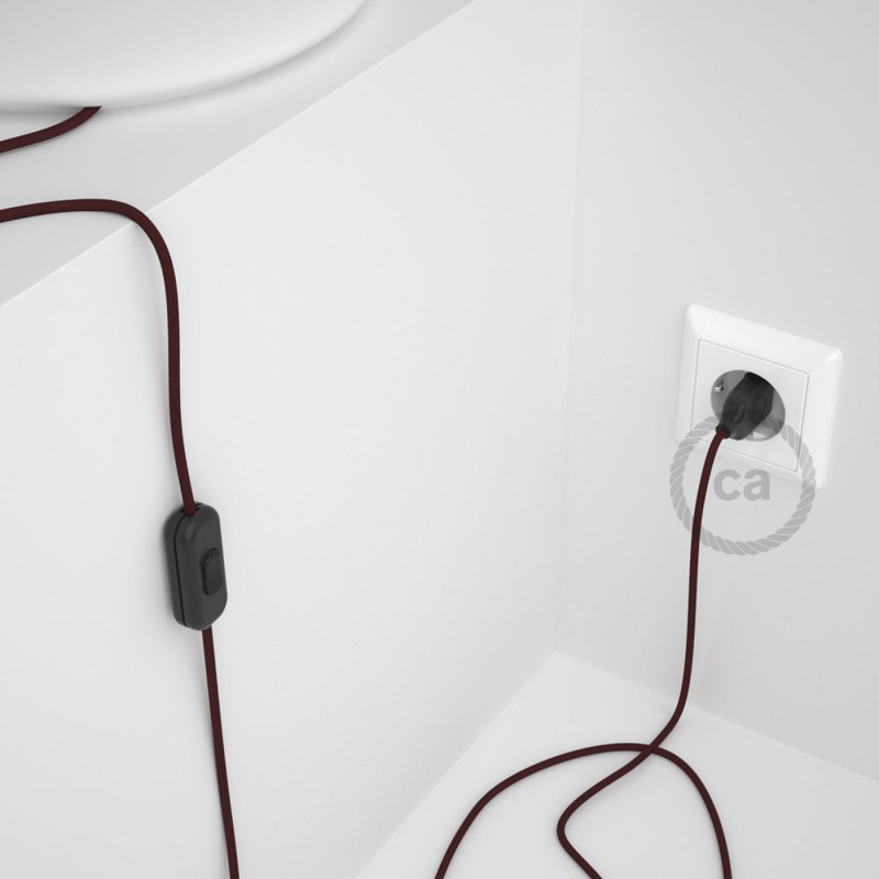 Renueva o da nueva color a una lámpara de mesa a través del cable Redondo en Tejido Efecto Seda RM19 Burdeos con clavija y interruptor.