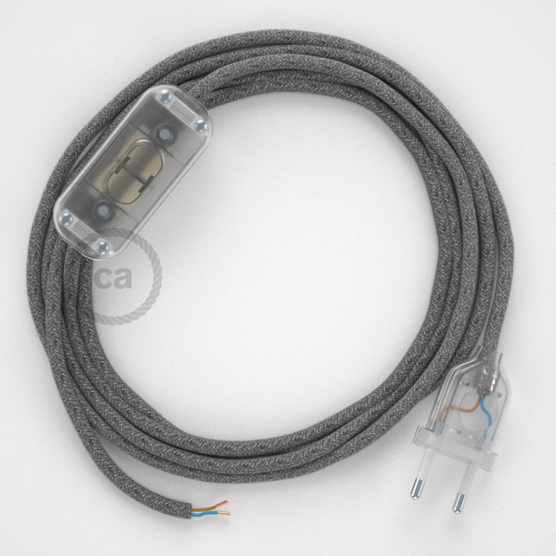 Renueva o da nueva color a una lámpara de mesa a través del cable Redondo en Lino Natural RN02 Gris con clavija y interruptor.