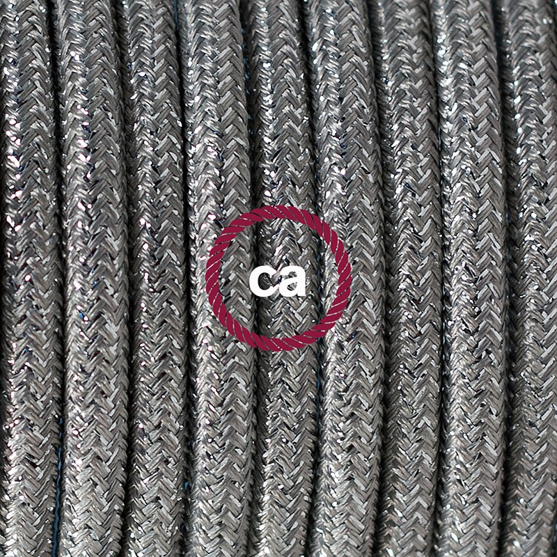 Renueva o da nueva color a una lámpara de mesa a través del cable Redondo en Tejido Efecto Seda RL02 Glitter Plateado con clavija y interruptor.