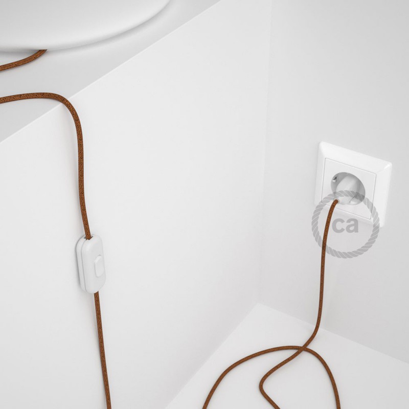 Renueva o da nueva color a una lámpara de mesa a través del cable Redondo en Tejido Efecto Seda RL22 Glitter Cobre con clavija y interruptor.