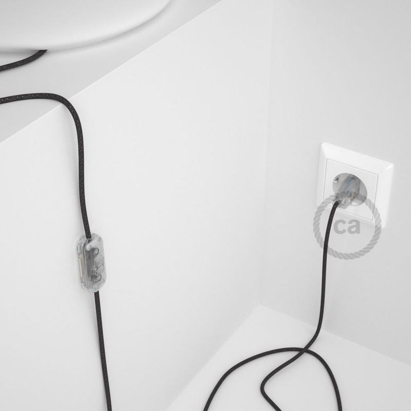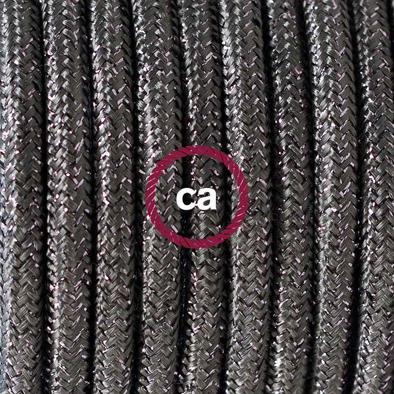Renueva o da nueva color a una lámpara de mesa a través del cable Redondo en Tejido Efecto Seda RL03 Glitter Gris con clavija y interruptor.