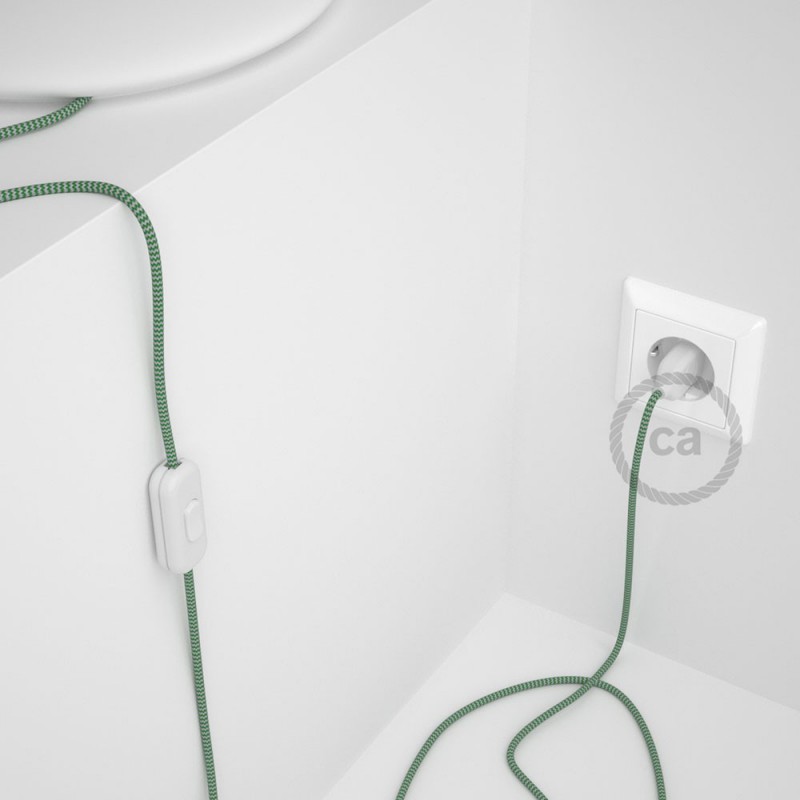 Renueva o da nueva color a una lámpara de mesa a través del cable Redondo en Tejido Efecto Seda RZ06 ZigZag Blanco Verde con clavija y interruptor.