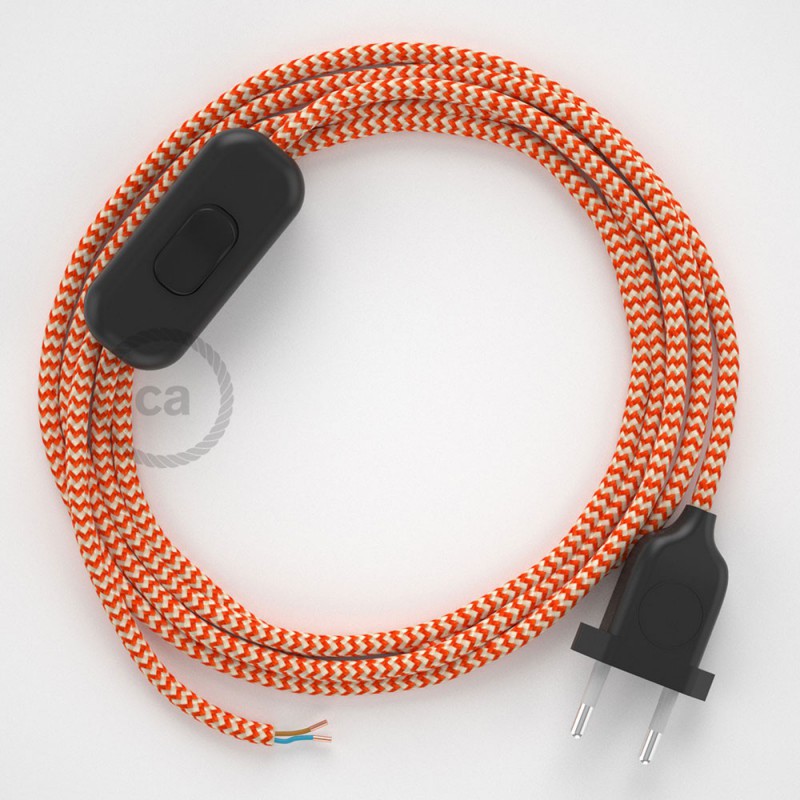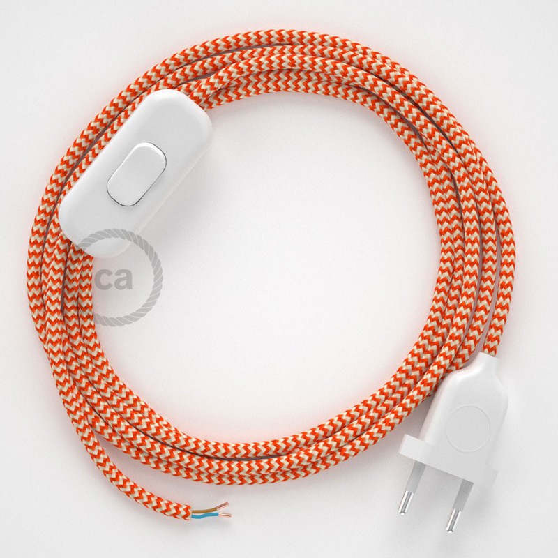 Renueva o da nueva color a una lámpara de mesa a través del cable Redondo en Tejido Efecto Seda RZ15 ZigZag Blanco Naranja con clavija y interruptor.